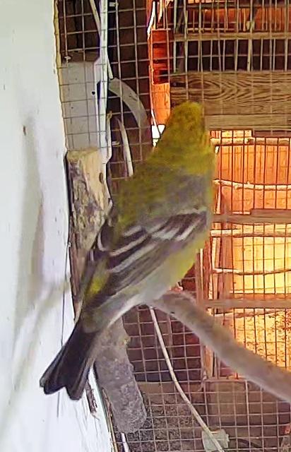 Щур таскает ветки. Не помню каким был пойман (красный или рыжик). Фото с камеры видеонаблюдения. Спина окрашена. Вопрос- самец или самка. По песне не отмечал пока, щуры в 4-х местах и в каком вольере поет особо не заморачивался.
